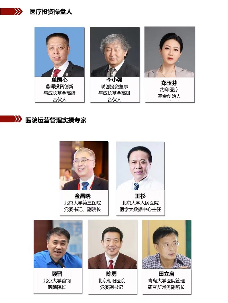 【增值服務(wù)】 資源對(duì)接——專家智庫,提供政策紅利,戰(zhàn)略規(guī)劃、運(yùn)營管理、品牌傳播等方面的咨詢與輔導(dǎo),實(shí)現(xiàn)資源互通、互助 ●資源整合——加入北京大學(xué)校友會(huì),整合專家資源、政府資源、金融資源、產(chǎn)業(yè)資源、同學(xué)資源等,促進(jìn)醫(yī)療全產(chǎn)業(yè)鏈自上而下的匯集、融通 ●資源共享——通過資源對(duì)接+資源整合,聚合行業(yè)內(nèi)優(yōu)秀領(lǐng)軍人才,以平臺(tái)資源創(chuàng)造共同價(jià)值,與學(xué)院共同成長、共同收獲、共同前行 【課程設(shè)置】