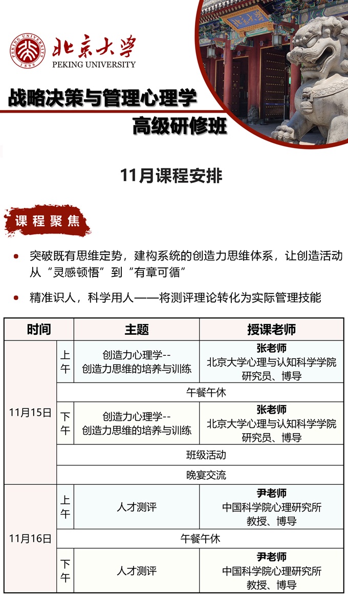北京大學戰略決策與管理心理學高級研修班11月課程安排 |