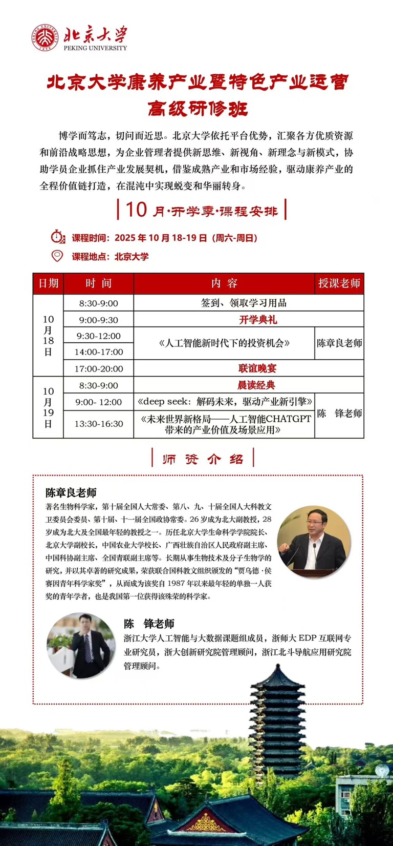 北京大學康養產業暨特色產業運營高級研修班10月開課安排 |