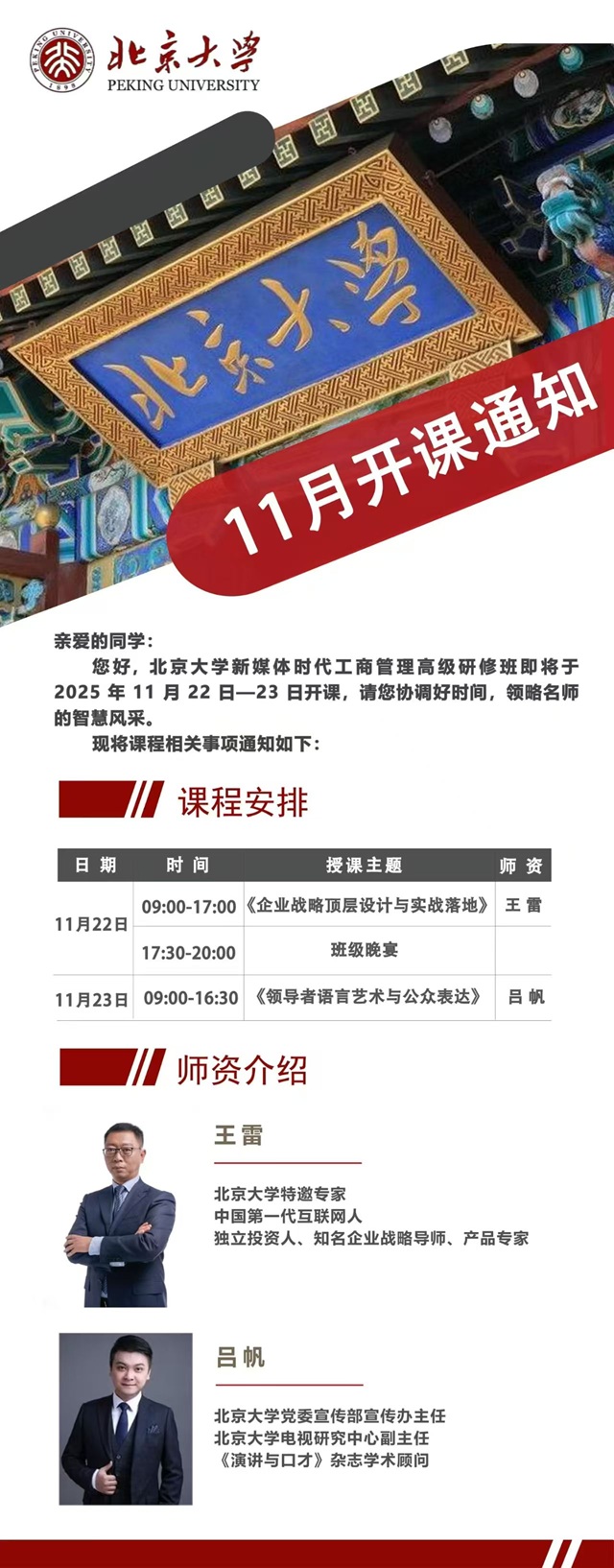 北京大學新媒體時代工商管理高級研修班2025年11月開課通知 |