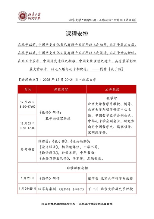 北京大學(xué)“國(guó)學(xué)經(jīng)典·正脈薪傳”研修班(第8期)12月開課通知