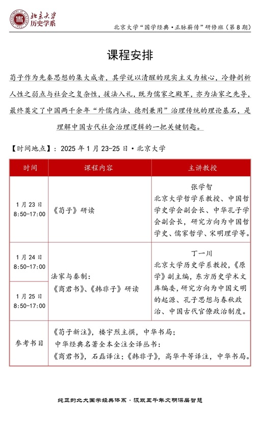 北京大學“國學經典·正脈薪傳”研修班(第8期)1月課程安排 |