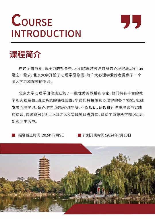 北京大學心理學研修班【開課時間】 2025-01-14